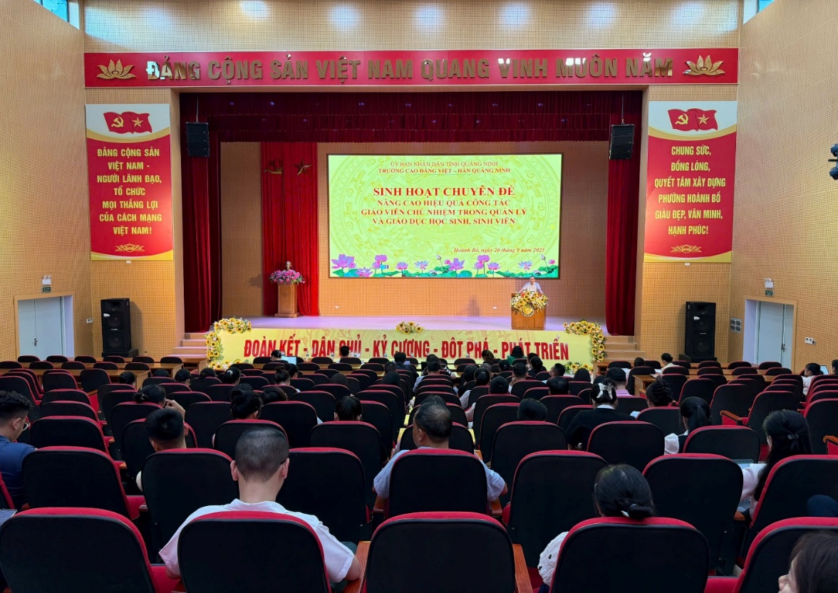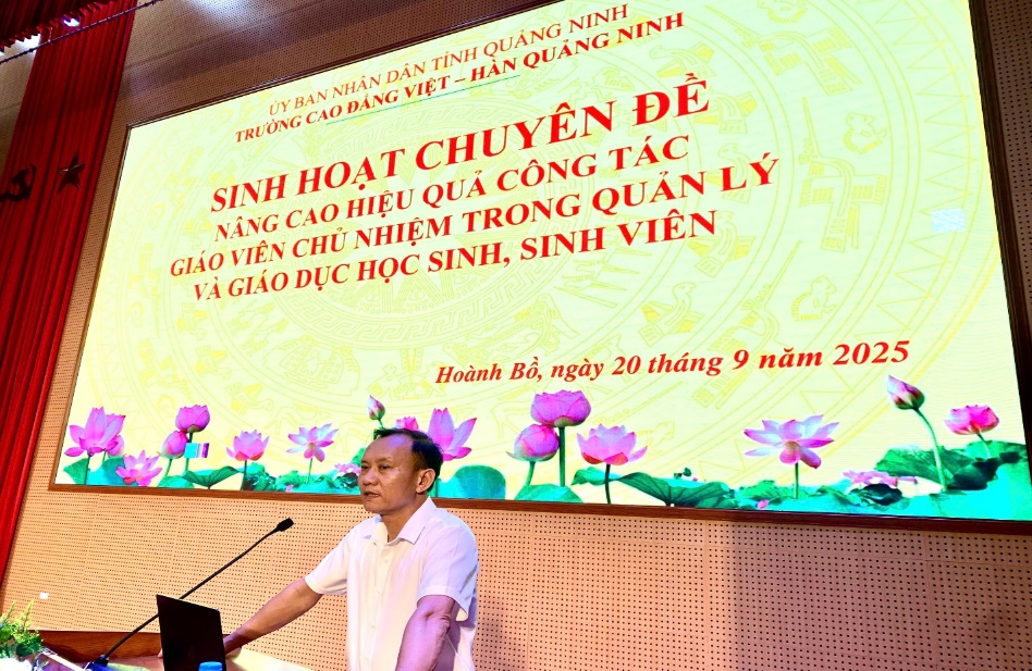 Ngày 20/9/2025, Trung tâm Công tác xã hội tỉnh Quảng Ninh phối hợp cùng Trường Cao đẳng Việt - Hàn Quảng Ninh triển khai buổi sinh hoạt chuyên đề nâng cao hiệu quả công tác giáo viên chủ nhiệm trong quản lý và giáo dục học sinh, sinh viên, với nội dung “Tâm lý học đường và Công tác xã hội trong quản lý học sinh, sinh viên”. Chương trình có sự tham dự của Ban Giám hiệu nhà trường, đội ngũ giáo viên chủ nhiệm và báo cáo viên của Trung tâm. Đây là một trong những hoạt động phối hợp giữa Trung tâm Công tác xã hội với các cơ sở giáo dục nhằm tăng cường hỗ trợ tâm lý - xã hội cho học sinh, sinh viên trên địa bàn tỉnh.